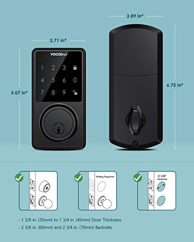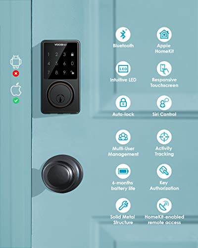 [2021 Upgraded] VOCOlinc Apple HomeKit ONLY Keyless Entry Deadbolt Door Lock Electronic LED Keypad Bluetooth Security Smart Auto Locking Home Hub Remote Control (TGuard Aged Bronze)