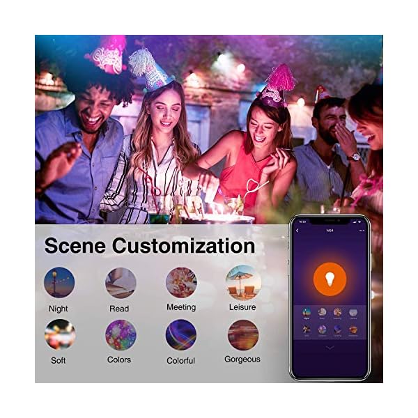 8-Scene Modes: With 16 million colors and 8 scene modes, you can set different light modes to match various occasions including bedroom, kitchen, living room, table lamp, cafe, bar, party etc.