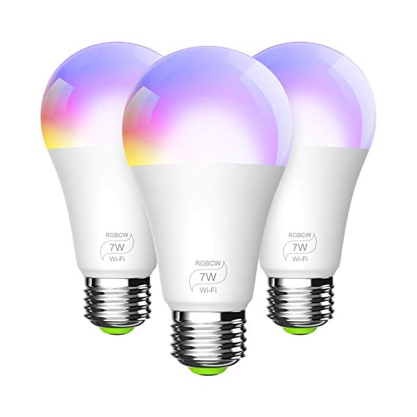 BERENNIS Smart WiFi Light Bulbs, Color Changing LED Lights, Work with Alexa Echo, Google Home, Siri and IFTTT, No Hub Required, A19 RGBCW (60w Equivalent) 3 Pack