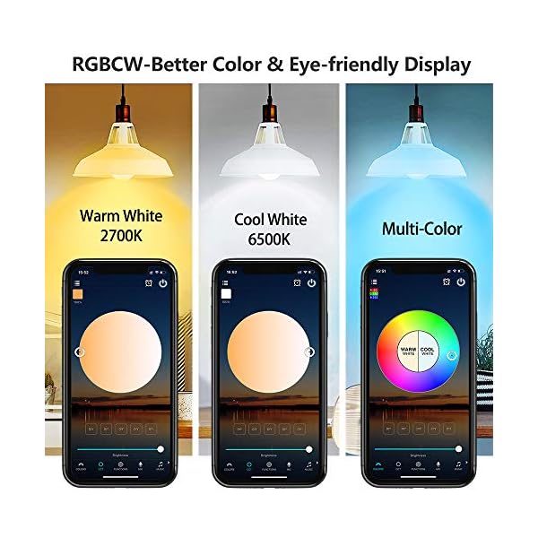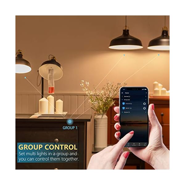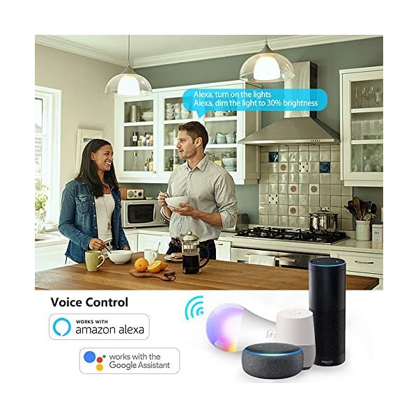 💡【WORK WITH GOOGLE ASSISTANT & ALEXA】Control your smart bulbs with a VOICE COMMAND to turn on/off/dim or brighten them and to change their color to the one of your choice.