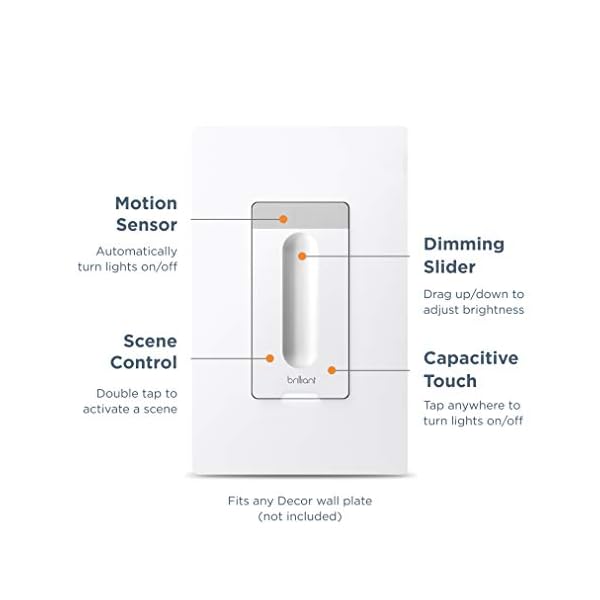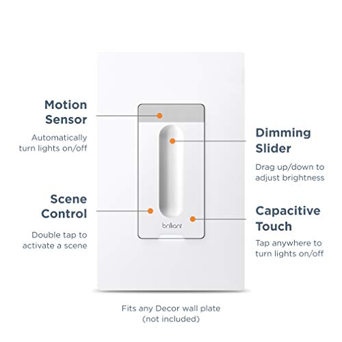 MOTION DETECTION, TIMERS & SCENE CONTROL: Automatically turn lights on and off when you enter and leave a room. Set timers to wake you up or turn lights on/off while you’re away. Use Brilliant scenes to combine multiple lights, music, climate, and more into single actions—double tap anywhere on the switch to activate a dedicated scene.