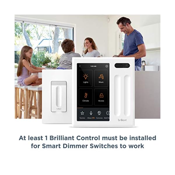 EXPANDS YOUR BRILLIANT SMART HOME SYSTEM: Brilliant Smart Dimmer Switches give you the ability to add smart lighting to your Brilliant System (also controls smart bulbs, fans, Sonos sound system volume, and more). At least one Brilliant Control panel must be installed for Brilliant Smart Dimmer Switches to work.