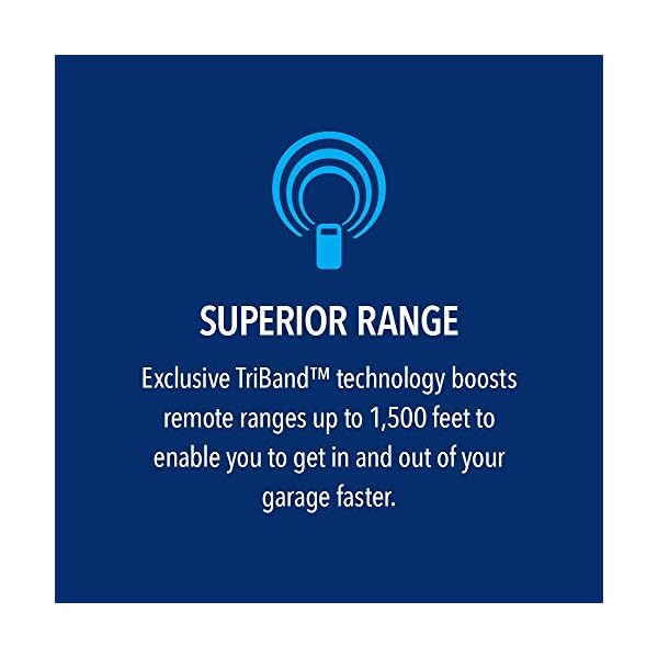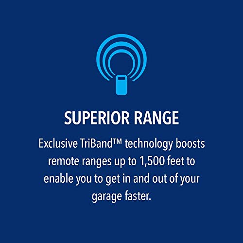 Superior Range – Includes 2 3-button remote controls that let you control up to 3 openers. Exclusive Triband technology boosts remote range up to 1,500 feet for a quicker entrance and exit. A wireless exterior keypad permits access with a four-digit secure code