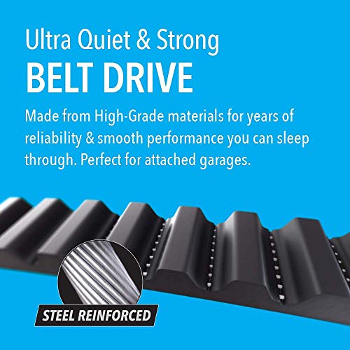 Ultra-Quiet & Strong Belt Drive – Steel-reinforced belt drive and constructed with high-grade materials for years of reliability and quiet, smooth performance—perfect for attached garages