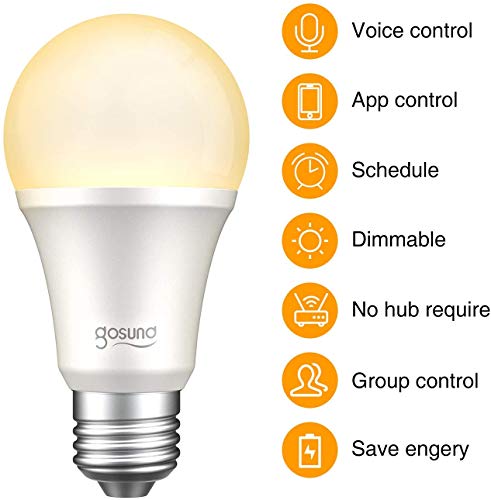 Gosund Smart Light Bulb Compatible with Alexa, Google Home, WiFi LED Bulb, E26 Dimmable Bulb A19 No Hub Required 2700K Warm White 8W Lights 75W Equivalent Lighting 6pack