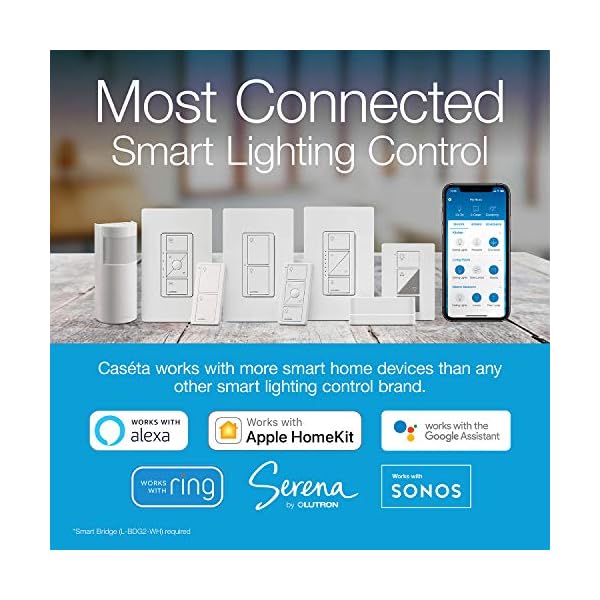 Works with your voice assistant or smart phone via the free Lutron app for iOS and Android (Smart Bridge required)