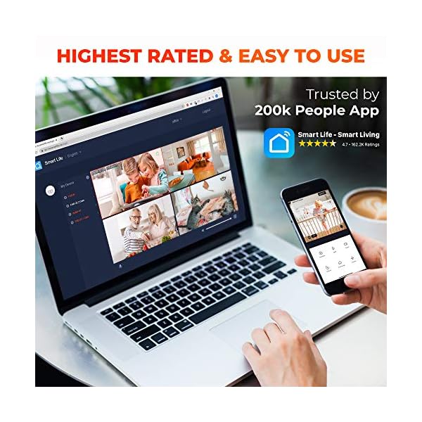 ★【SUPER EASY SETUP WITH TOP RATED APP (30K 5-STAR REVIEWS)】- Quick WiFi setup with high rank mobile App “Smart Life” on iPhone or Android smartphone (5GHz is not supported). Wireless security camera supports remote access via mobile App anywhere and anytime. This security camera with Micro SD card slot (16-128GB supported). ▲Support 2.4GHz WiFi only.