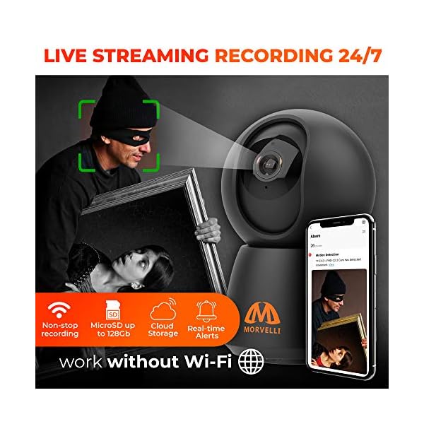 ☁【FULL HOME PROTECTION WITH CLOUD STORAGE AVAILABLE】- Having placed several MORVELLI cameras around the house – you can always be aware of what is happening and where! With built-in high-sensitivity activity detection technology alerts will be immediately sent to your devices when moving objects are detected. The channel that transmits information, has advanced encryption technology, protects you from hacking! The camera supports cloud storage for recording by motion sensor.