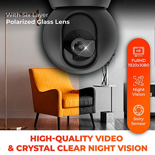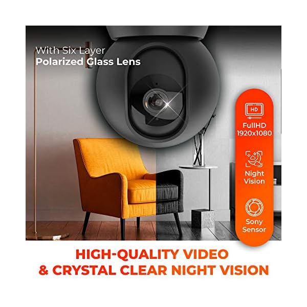 🎥【REAL 1080P FullHD With SONY SENSOR & Perfect IR Night Vision】- FullHD 1080P, 2.0 MP home security camera, better image capture by High-quality optics SONY, auto white balance, and exposure. Sharp and contrast-rich night vision, IR auto switch. 355 x 60 degree Pan/Tilt covers every corner of your room.