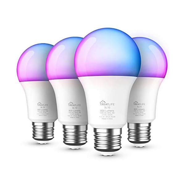 Smart Bulb 4 Pack, Color Changing Light Bulb Dimmable Multicolor and White LED Bulb, Works with Alexa, Google Home, A19 E26 9W (60W Equivalent) 800 Lumen, No Hub Required, Smart Home Lights