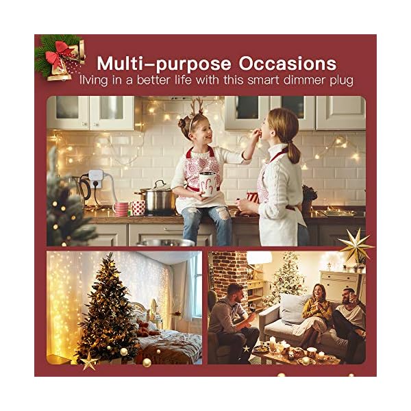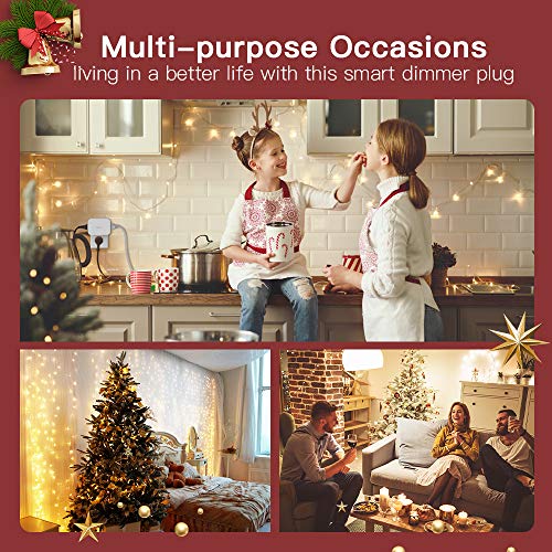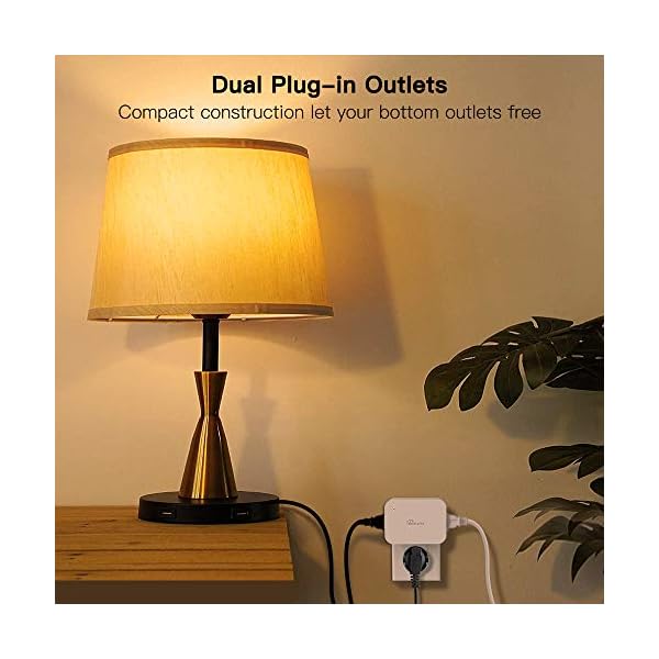 【Dual Outlets & Easy to Set Up】Two US-standard outlets on the left and right, you can control two table lamps or floor lamps at the same time. Simply plug the dimmer into any in-wall outlet, then plug in your lights to both side of the smart outlet, then you can control yours lights at any time.Space saving design can left the bottom outlet free when plugged into the top outlet.