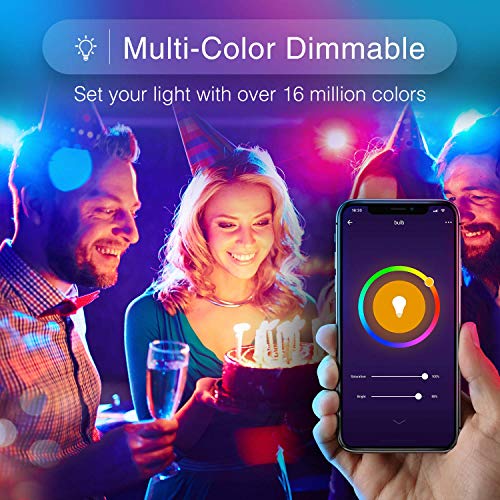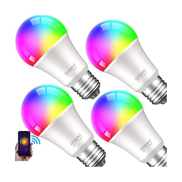 Smart Wifi Light Bulb Gosund LED WiFi RGB Color Changing Bulbs that Works with Alexa Google Home Assistant, E26 A19 8W Multicolor Lights Bulb, No Hub Required, 2.4GHz Only, 4 Pack