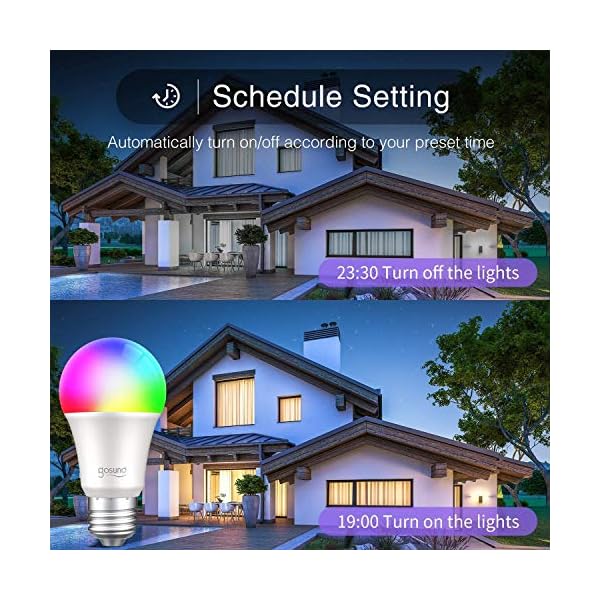 Easy set-up & Schedule: Gosund smart light bulb can automatically turn on / off the light by setting the schedule. At the same time, it supports countdown timer closing function. Download Gosund APP and sign in, install the bulb(no hub required),and connect the bulb to app. Please make sure 2.4Ghz Wifi only.