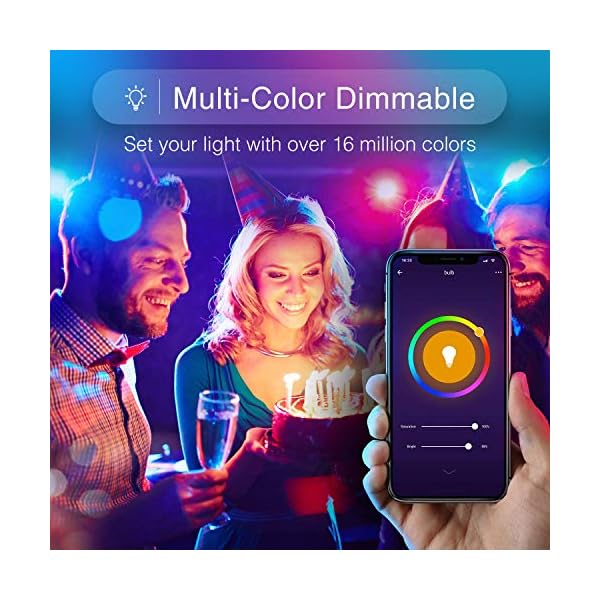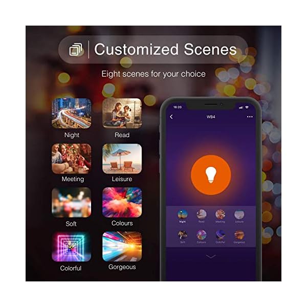 Colorchanging & Dimmable: Gosund RGB smart light bulb supports 16 million colors, and you can adjust the color that suits your mood. There are 8 scenes to choose from, and scenes DIY is also supported. Perfect for family parties and Halloween/Christmas festivals.