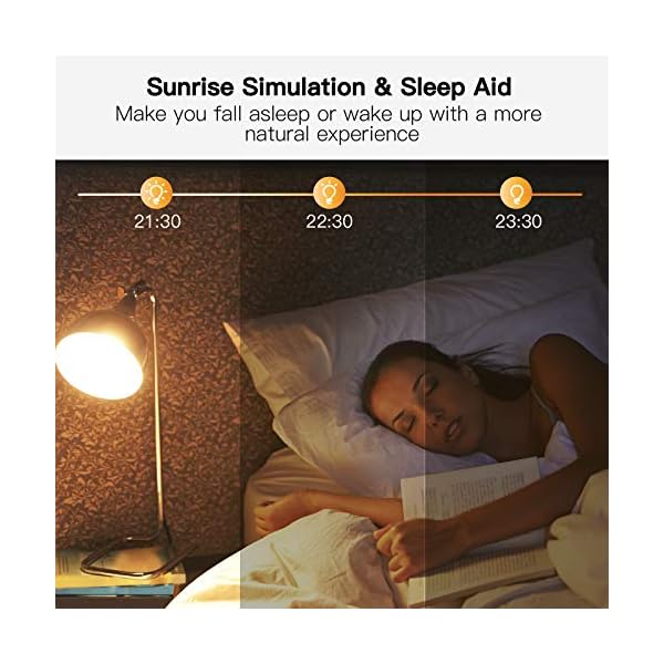【Sunrise Simulation & Sleep Aid】With sunrise and sunset simulation function, the time and brightness of light‘s fade in/out can be personalized. Once the set time is reached, the light will gradually light or dim up, achieving the effect of waking up or falling asleep naturally.