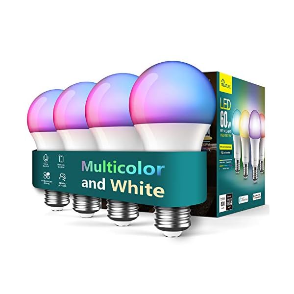Treatlife Smart Light Bulbs 4 Pack, Music Sync Color Changing Light Bulbs, Works with Alexa, Google Home, A19 LED Dimmable 9W 800 Lumen Smart Bulb for Party Decoration, Smart Home Lighting