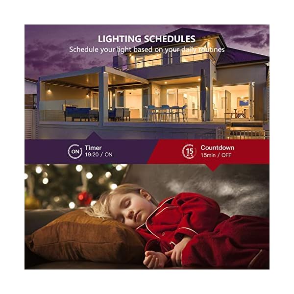 [AUTOMATED SCHEDULES]: Create schedules (timer or countdown) to automatically turn on and off the light based on everyday routines or to simulate occupancy while you are on vacation to trick potential intruders.