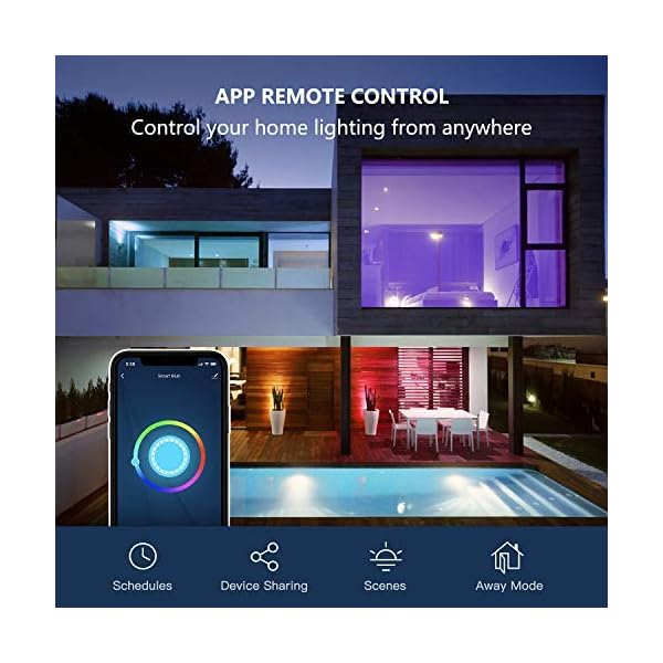 [REMOTE CONTROL]: Control the led light bulb from anywhere with your smartphone using the Smart Life APP. Enjoy the freedom of being able to control your smart home lighting from anywhere, whether you are in your cozy bed, in the office or on vacation. You can create schedules, monitor real-time light status, share devices and even control a group of lights in your house with a tap of the phone screen. 2.4GHz Wi-Fi Only (not 5GHz). FCC Certification.